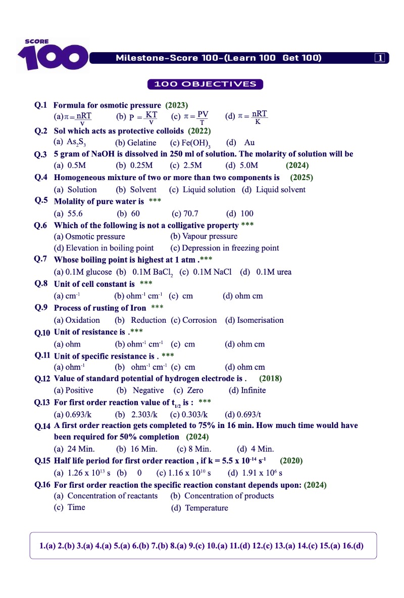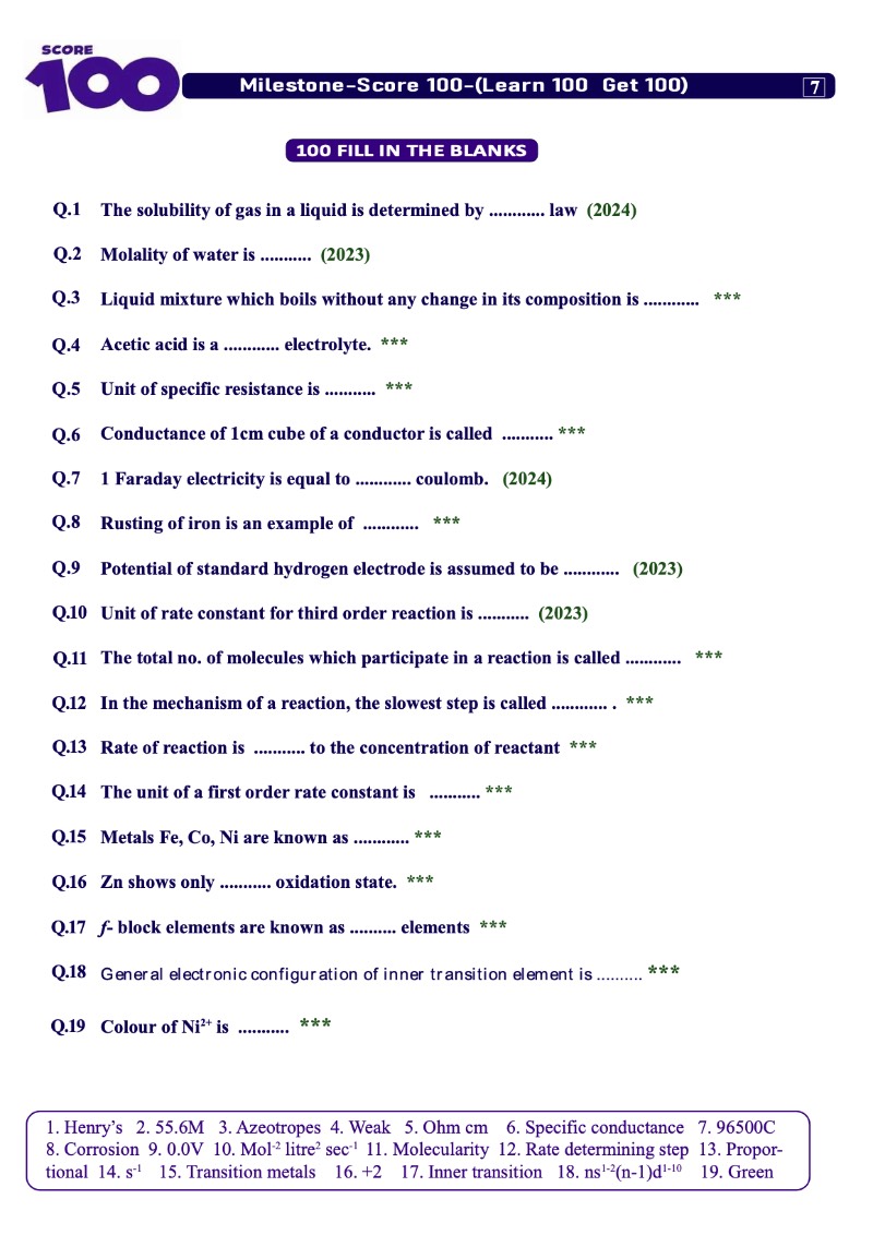 Score 100 Chemistry is an 100 question with model paper book that help student in their board exam